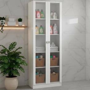 Produto: Armario Multiuso 2 Portas Vidro 171X60 cm | Profundidade: 31,5 | Cômodo Indicado: Multiuso | tonalidade: Multicolorido | Cor: Branco