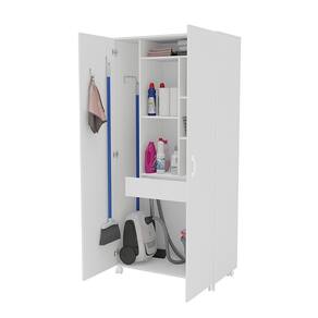 Características: Estrutura MDP Pintura UV 02 Portas com dobradiças metálicas 01 Gaveta com corrediças metálicas Nicho para tábua de passar Puxadores em Plástico Peso suportado por Prateleira: 2kg Peso suportado na Gaveta: 2kg
