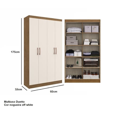 Acabamento: VernizAcabamento da Porta: Pintura UVAcabamento da Prateleira: Pintura UVAltura: 175 cmAmbiente Principal: Área de ServiçoCor Flex: NaoCor Interna: ÔnixCor Predominante: BegeCor do Produto: Off White/NogueiraEscala de Brilho: BrilhanteEscala de Brilho da Porta: Super-BrilhoEscala de Brilho da Prateleira: Semi-BrilhoEstilo: ModernoLargura: 92 cmLinha ou Coleção: DuetoMaterial Principal: MDPMaterial da Porta: MDPMaterial da Prateleira: MDPMaterial do Puxador da Porta: ABSPossui Espelho: NãoPossui Gavetas: NãoPossui Portas: 04Possui Prateleiras: 08Possui Pés: NãoProfundidade: 32 cmSapatas Niveladoras: NãoSuporta Até (kg): 40 kgTipo de Dobradiça/Corrediça da Porta: MetálicaTipo de Porta: BaterTipo de Puxador da Porta: Externo