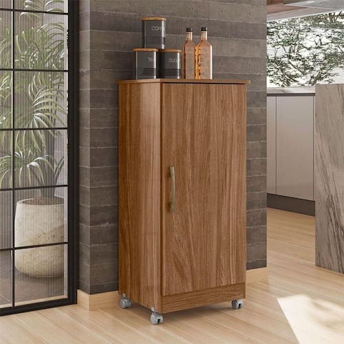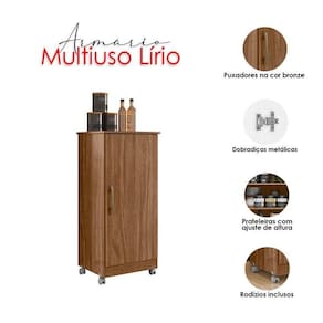 Começou a procurar móveis para sua casa? Então apresentamos para você este belo armário multiuso da linha Lírio. Possuindo uma porta com puxador na cor bronze, entrega um toque de elegância. Com três prateleiras internas com ajustes de altura, proporcionando mais flexibilidade de acordo com sua necessidade, oferecendo um ótimo espaço interno para acomodar vários itens. O diferencial fica por conta dos rodízios, facilitando sua movimentação. Fabricado pela Moval, é desenvolvido em MDP de alta qualidade. Sendo a escolha ideal para quem está buscando praticidade, organização e versatilidade no dia a dia, aproveite!