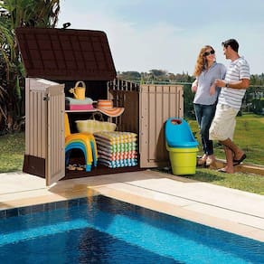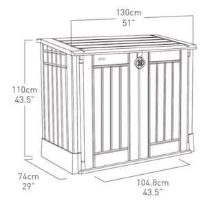 Principais características Volume de cerca de 0,8 cm Chão incluído Adequado para 2 latas de lixo de até 120 litros Abertura fácil da tampa Bloqueável (chave não incluída)