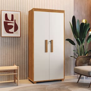 Armario Multiuso Atenas 100 MDF Funcional e versatil, o Multiuso Atenas e perfeito para otimizar espacos com elegancia. Com estrutura 100 em MDF, oferece 2 prateleiras moveis e 2 fixas, puxadores em MDF, pes em madeira e acabamento reforcado com encabecamento de 20 mm nas laterais e base. Ideal para dormitorios, lavanderias ou escritorios.