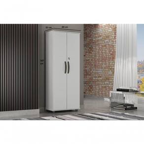 Armário Multiuso Caio 2 Portas Com Chave - Chf Móveis Branco O Multiuso Caio é ideal para auxiliar na organização do ambiente, oferecendo um amplo espaço para armazenar uma variedade de produtos. Feito em MDP, possui 2 portas de bater com chave para maior e conveniência. Conta com 4 prateleiras capazes de suportar até 15 kg cada. Os puxadores em ABS bronze e os 4 pés adicionam um toque de elegância. Ele transforma seu espaço em algo verdadeiramente especial. Particularidades do Armário: Características: - Estrutura em MDP; - Puxadores ABS bronze; - Com pés; - Porta com chave; - 4 prateleiras; - Acabamento com pintura UV brilhante;