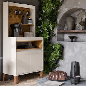 O design moderno desse balcão cantinho do café vai adicionar um toque de elegância e estilo à sua cozinha, sala de estar, escritório ou até mesmo ao espaço gourmet. Com suas linhas retas e acabamento impecável, esse armário multiuso é capaz de combinar com qualquer estilo de decoração, tornando-se a peça essencial para quem busca praticidade. Além disso, com o excelente espaço interno, uma prateleira, nicho decorativo e, ainda, ganchos especialmente projetados para suspender suas xícaras favoritas, você terá fácil acesso a tudo que precisa para ter um momento de relaxar, enquanto aprecia a pausa para o cafezinho. Chega de perder tempo procurando pelos seus utensílios preferidos! Com o cantinho do café, tudo estará organizado e ao seu alcance!