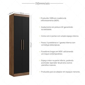 Suas 2 portas com puxadores longos em MDF garantem praticidade no manuseio, enquanto a gaveta com corrediças telescópicas oferece abertura total e silenciosa. Com 4 nichos internos ideais para roupas dobradas ou utensílios de lavanderia, além de um espaço dedicado para objetos mais altos, a organização nunca foi tão fácil.