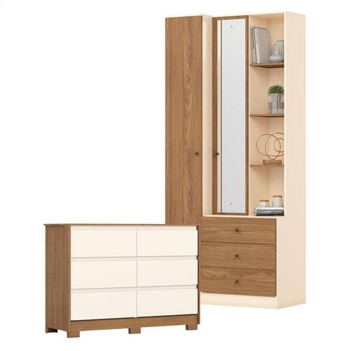 Procurando por um quarto minimalista mas que atenda as suas necessidades? Temos uma ótima opção para você! Apresentamos este lindo kit de Armário Multiuso Doha e Cômoda Ravenna. Armário conta com duas portas, sendo uma com espelho, nichos decorativos e pode ser montado para esquerda ou direita. A Cômoda Ravenna possui 6 Gavetas com corrediças telescópicas, moldura em MDF de 15mm e design robusto! Confira mais detalhes e aproveite!