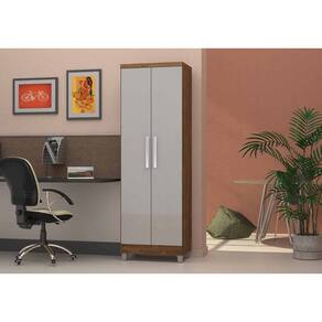 Duas portas: Permitem fácil acesso e organização dos seus itens. Pés em PVC: Resistentes, garantem estabilidade e durabilidade ao armário. 4 prateleiras: Proporcionam ótimo espaço interno para acomodar diferentes objetos. Puxadores cromados em plástico: Design moderno e funciona.