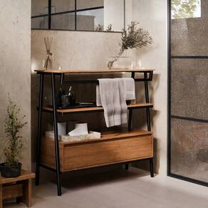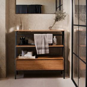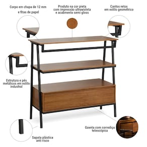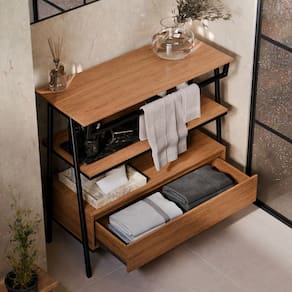 Características do Produto: -Design moderno e funcional -Gaveta ampla para itens de higiene, maquiagem e acessórios -Suporte para toalha mais praticidade no cotidiano -Pés em metalon resistentes, proporcionando durabilidade e estilo -Ideal para banheiros, lavabos ou espaços compactos