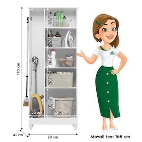 Armário Multiuso Jade 2 Portas Branco - Moval Branco Armário Multiuso Jade 2 Portas - Moval O Armário Jade vai deixar sua casa mais organizada. Com design moderno e versátil, ele é um móvel compacto que pode ser utilizado em diversos cômodos da casa, como lavanderia, quarto e escritório, entre outros. Um móvel essencial para quem não abre mão de um ambiente organizado. Com estrutura em MDP resistente, pintura UV de alta qualidade, 2 portas com dobradiças metálicas, prateleiras internas espaçosas, puxadores elegantes na cor bronze, 4 ganchos de metal para vassouras, cantoneira de metal para fixação segura na parede e pés em PVC duráveis, o Armário Jade é a escolha perfeita para deixar sua casa mais organizada e charmosa. ESPECIFICAÇÕES: - Estrutura em MDP - Pintura UV - 2 Portas - Dobradiças metálicas - Interna com prateleiras - Puxadores na cor bronze - 4 Gachos de metal para vassouras - Cantoneira de metal para fixação na parede - Pés em PVC