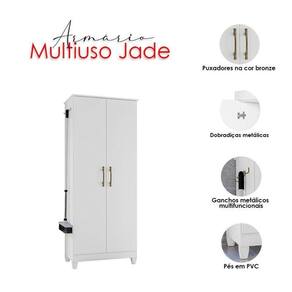 Está procurando móveis para sua casa? Apresentamos para você este belo armário multiuso da linha Jade. Com duas portas e quatro prateleiras internas, proporciona um excelente aproveitamento para acomodar diversos itens. Seu diferencial é o gancho metálico multifuncional, ideal para pendurar seus acessórios, otimizando ainda mais o espaço. Os puxadores na cor bronze dão um charme. Fabricado pela Moval é desenvolvido em MDP. Sendo a escolha ideal para quem busca praticidade, versatilidade, organização e um toque de sofisticação, aproveite!