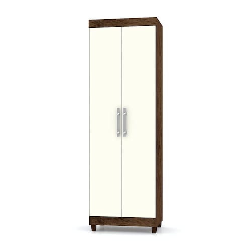 Este armário conta com duas portas que abrem para revelar um espaço interno bem distribuído, com prateleiras ajustáveis que permitem acomodar itens de diferentes tamanhos.