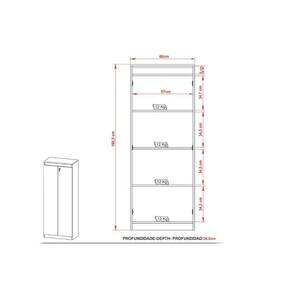 Dimensões(Cm): Comprimento(Profundidade): 36,5cm x Largura: 60cm x Altura: 160,5cm