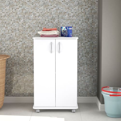 Características: Estrutura MDP Pintura UV 02 Portas com dobradiças metálicas 04 Prateleiras com amplo espaço Puxadores em Plástico Peso suportado no Tampo: 10kg Peso suportado por Prateleira: 10kg