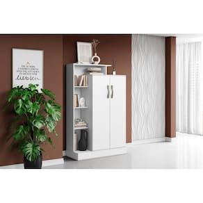O Armário Multiuso 2 Portas Florença Aramóveis, elaborado com aglomerado de 15mm e 12mm de espessura para proporcionar resistência e durabilidade incomparáveis. Seu amplo espaço interno garante estabilidade, enquanto os puxadores de plástico conferem robustez. Equipado com dobradiças metálicas para abrir e fechar as portas. O acabamento em verniz texturizado fosco e verniz brilho nas portas não apenas conserva o móvel, mas também mantém sua beleza constante, oferecendo resistência e durabilidade excepcionais.