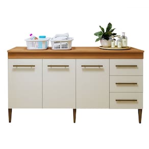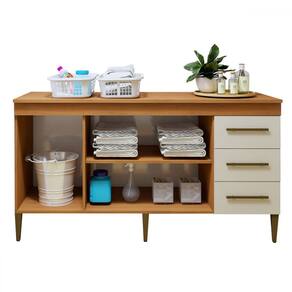 O(a) Armário Multiuso Nova Iguaçu 3 Portas 3 Gavetas Natural/Off White - Kaki Móveis é produzido em MDP na escala de brilho Fosco, e possui um grau de dificuldade de montagem: Médio.