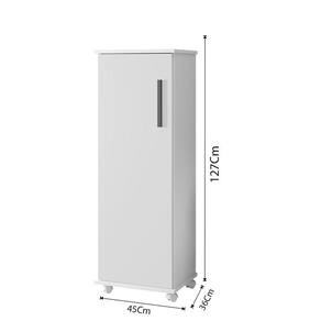 O Armário Multiuso com Rodízio Olinda se adapta a todos os espaços, organizando e decorando ambientes como quartos, copa, espaço gourmet e áreas de serviço. Uma porta, ótima divisão interna com quatro prateleiras, acabamento interno branco e rodízios.