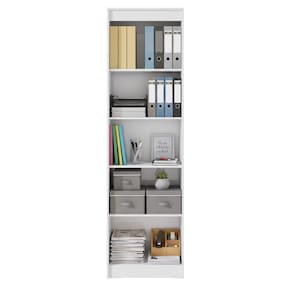 Fabricado em MDP com chapas de 12 e 15mm, oferece resistência, durabilidade e excelente acabamento. Seu interno com 5 nichos bem distribuídos permite organizar roupas, produtos de limpeza, mantimentos, caixas organizadoras e muito mais.
