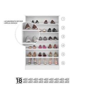 O interior da sapateira oferece amplo espaço para acomodar diversos pares de sapatos, proporcionando uma organização eficiente. A estrutura aberta elimina a necessidade de portas articuladas, mantendo seus sapatos à vista e facilitando a escolha do par perfeito para cada ocasião. A Sapateira Multiuso Yasmin é a união perfeita de funcionalidade e estilo, transformando a forma como você guarda seus calçados.