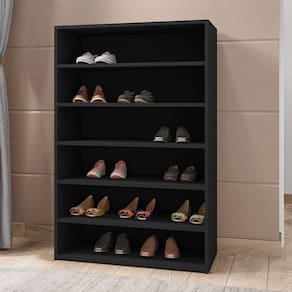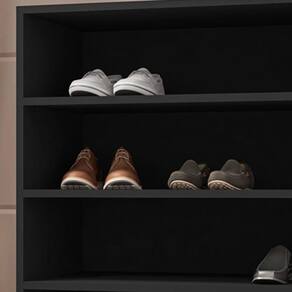O interior da sapateira oferece amplo espaço para acomodar diversos pares de sapatos, proporcionando uma organização eficiente. A estrutura aberta elimina a necessidade de portas articuladas, mantendo seus sapatos à vista e facilitando a escolha do par perfeito para cada ocasião. A Sapateira Multiuso Yasmin é a união perfeita de funcionalidade e estilo, transformando a forma como você guarda seus calçados.