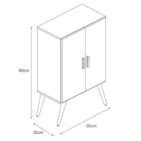 Armário Multiuso Sapateira Pés Retrô 2 Portas Carly Branco Mantenha seus sapatos organizados de forma prática e funcional com esta sapateira compacta. Com 50 cm de largura, ela conta com duas portas de bater e três prateleiras removíveis, permitindo guardar calçados de diferentes tamanhos de maneira organizada. A estrutura em mdp garante resistência e durabilidade, enquanto o acabamento em pintura UV protege e valoriza o móvel. Os quatro pés retrô em madeira maciça proporcionam estabilidade e um toque de charme ao ambiente, tornando a sapateira ideal para quartos e corredores menores, unindo praticidade, organização e estilo. Dimensões da Sapateira Baixa com Pés Retrô 2 Portas:: - Altura: 88 cm - Largura: 50 cm - Profundidade: 35 cm