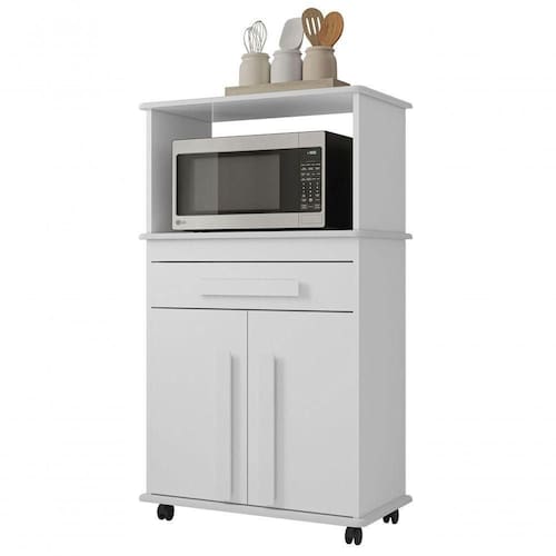 Armário Multiuso Toronto Branco - Rv Móveis O Armário Multiuso Toronto - RV Móveis vem para complementar a decoração do seu ambiente com requinte e qualidade, deixando-a mais atraente. O Armário Multiuso Toronto conta com duas portas e uma prateleira e uma gaveta com corrediças telescópicas, produzido em MDP 15 mm, com acabamento em pintura ultravioleta deixando seu móvel ainda mais forte e resistente.Dimensões do Produto Montado:Altura: 130 cmLargura: 74 cmProfundidade: 45 cmObservações:- 01 Gaveta com corrediças telescópicas;- Puxadores em MDF;- Dobradiças Metálicas;- 04 Rodízios;- 01 Prateleira interna;- Nicho para forno ou microondas;- Pintura Ultravioleta com acabamento brilho.