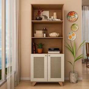 O(a) Armário Multiuso Trama 2 Portas 4 Prateleiras Cinamomo/Off White - Artely é produzido em MDF e MDP na escala de brilho Fosca com Textura, e possui um grau de dificuldade de montagem: Médio.