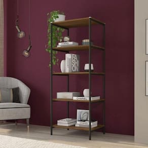 - 5 prateleiras em madeira MDP na cor demolição, ideais para acomodar objetos, utensílios ou decoração.