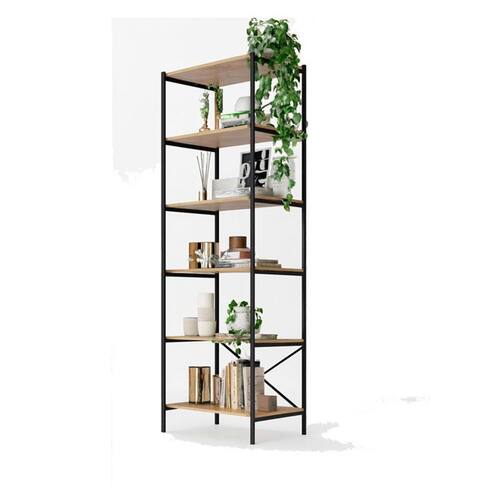 - 6 prateleiras em madeira MDP na cor demolição, ideais para acomodar objetos, utensílios ou decoração.