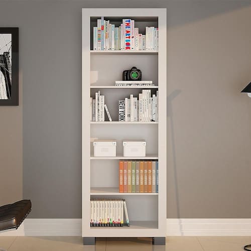 Com a Estante para livros Flex da Valdemóveis você vai organizar seus livros, objetos e muito mais com praticidade, sem deixar de lago a sofisticação e elegância. Essa linda estante de livros conta com 5 espaçosas prateleiras que permite o armazenamento de diversos objetos de forma organizada. A moldura incorporada ao produto agrega charme ao ambiente, combinando com qualquer tipo de decoração. Além disso, o livreiro é elevado, graças aos seus 8 pés reforçados, o que facilita a limpeza por debaixo do móvel. Sem falar na sua estrutura em madeira MDP e MDF, materiais que elevam a qualidade e durabilidade do produto. Outro ponto que vale a pena ser ressaltado é seu acabamento em pintura U.V. que proporciona cores mais vivas tornando essa estante livreiro mais bonita e diferenciada. Deixe seu ambiente moderno e com tudo no lugar com essa linda estante multiuso Flex da Valdemóveis. Cor: Branco