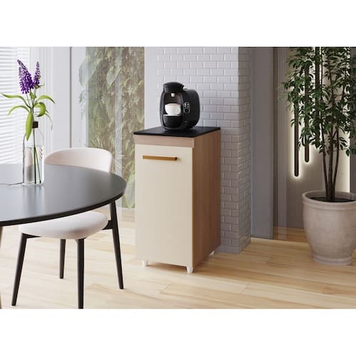 Armário Multiuso Zoe 1 Porta Compacto para Cozinha e Área de Serviço Savana e Off White Mobília Decor - Marrom | Off White