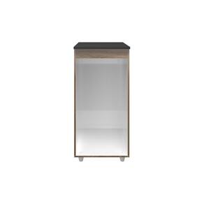 A robustez do móvel é garantida pela estrutura em MDP, com caixote de 12mm e tampo e porta de 15mm, proporcionando estabilidade e resistência para o uso diário. O acabamento em pintura U.V. confere um toque refinado ao produto, disponível nas combinações Branco, Savana com Off White ou Savana com Preto, permitindo que você escolha a opção que melhor harmoniza com a decoração do seu lar. Além disso, conta com porta equipada com dobradiças metálicas e puxador plástico ergonômico, facilitando o acesso ao seu interior.