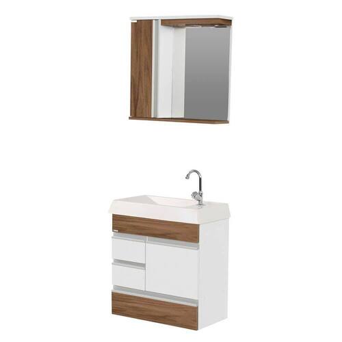*Imagens meramente ilustrativas. Os armários da linha Nápole são perfeitos para qualquer ambiente, pois possuem vários tamanhos, cores e modelos. Sua estrutura é em MDP BP 12 mm texturizado branco, com acabamento em fita de borda. Portas e gavetas em textura branca, frontão e gavetão com texturas amadeiradas, com acabamento em lamina melânico. Possuem puxador Perfil em alumínio. Espelheira com prateleira em vidro temperado 3 mm e lâmpada de LED bivolt que ilumina o espelho uniformemente. Sua pia possui design moderno e prático, com linhas retas e puras, trazendo ao ambiente uma sensação de leveza e sofisticação. Produto entregue pré-montado na caixa, necessário apenas fixação na parede. Manual de montagem acompanha o produto. Largura Total: 79,5 cm Altura Espelheira: 57 cm Altura Gabinete: 58,5 cm Profundidade Gabinete: 29 cm Profundidade Espelheira: 15,5 cm Atenção: Não nos responsabilizamos, no ato da , por desmontagens, subir escadas/elevadores ou transporte por guincho para apartamentos. Eventuais despesas são de responsabilidade do cliente. Confira as dimensões deste produto e certifique-se de que o mesmo passará normalmente por supostos elevadores, portas, escadas e/ou corredores de sua moradia.