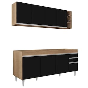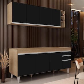 Em um cômodo que exige funcionalidade e beleza o Conjunto Armário Aéreo Nevada e Balcão para Pia 180cm Dallas Castanho/Preto da Lumil é a escolha perfeita para a sua Cozinha! Vem conhecer os detalhes!