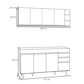 Conteúdo da Embalagem: 1 Balcão, 1 Armário Aéreo, 1 Nicho.