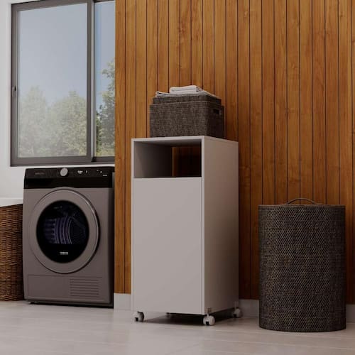 O Armário Organizador Cesto De Roupas Para Lavanderia com Rodinha Multiuso Branco é a solução perfeita para a funcionalidade e organização, eficiente da sua lavanderia!