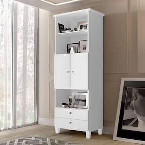 Produto confeccionado em chapas de MDP de 15 mm. O tampo e produzido com chapa de 30 mm em MDP com bordas de papel no processo de engrosso não sendo maciço ou seja uma chapa de 15 mm com engrosso de 15 mm. As demais peças são produzidas em chapas de 15 mm em MDP com bordas de papel e pintura U.V. Seus pés são produzidos em madeira de pinus com pintura P.U. As portas são afixadas com dobradiça metálica e puxadores de metal. As gavetas são com corrediças telescópicas e puxadores de metal.