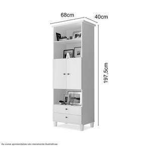 Produto confeccionado em chapas de MDP de 15 mm. O tampo e produzido com chapa de 30 mm em MDP com bordas de papel no processo de engrosso não sendo maciço ou seja uma chapa de 15 mm com engrosso de 15 mm. As demais peças são produzidas em chapas de 15 mm em MDP com bordas de papel e pintura Seus pés são produzidos em madeira de pinus com pintura As portas são afixadas com dobradiça metálica e puxadores de metal. As gavetas são com corrediças telescópicas e puxadores de metal.