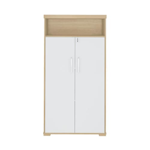 Possui três prateleiras internas e um nicho aberto para armazenar documentos, utensílios de sua preferência.