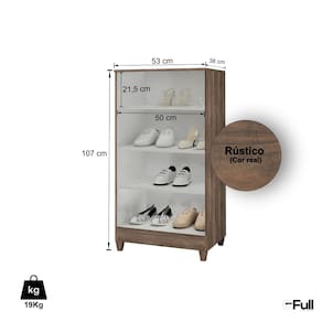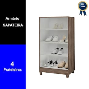 As cores branco, café, cinamomo e rústico dão um toque de charme e elegância ao produto, combinando bem com diversos estilos de decoração. As 2 portas contam com puxadores elegantes que facilitam o acesso aos seus sapatos. Já as 4 prateleiras, oferecem espaço suficiente para acomodar uma variedade de tamanhos de sapatos, mantendo-os organizados e visíveis.