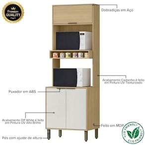 Armário Paneleiro De Cozinha E Torre Quente 2 Fornos - Glória Castanho/off White Armário Paneleiro de Cozinha e Torre Quente 2 Fornos - Glória Castanho/Off White - A central de eletrodomésticos da sua cozinha. Organize sua cozinha com a Torre Quente Glória 70cm. Com dois nichos para fornos, ela centraliza seus eletrodomésticos e libera sua bancada. Possui armários superior e inferior, e um nicho decorativo. A porta superior basculante com pistão a gás e os pés reguláveis são diferenciais de funcionalidade. Feita em MDP 15mm, é a escolha inteligente para um ambiente moderno.