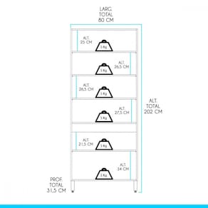 Dimensões: Altura: 202 cm Largura: 80 cm Profundidade: 31,5 cm Peso: 42 kg
