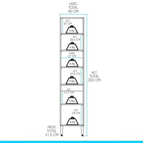 Dimensoes: Altura: 202 cm Largura: 40 cm Profundidade: 31,5 cm Peso: 26,7 kg