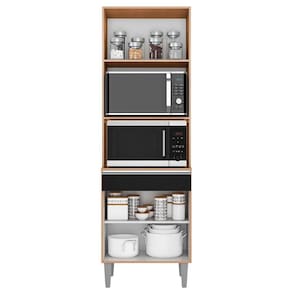 Está montando sua cozinha? Apresentamos para você este belo armário torre quente da linha Andréia. Possuindo três portas, sendo uma basculante, além de uma gaveta com corrediças metálicas, proporcionando um deslizamento suave e seguro. O destaque fica por conta dos dois nichos, com espaço para acomodar seu microondas e outros eletros de forma prática e organizada. Com puxadores e pés em PVC, alia robustez com facilidade na hora da limpeza. Fabricado pela AJL, é desenvolvido em 100% MDP, será uma excelente opção para complementar sua cozinha com estilo e funcionalidade. Aproveite e garanta já o seu!