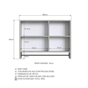 - Modelo: Armario Para Banheiro 01 Porta Com Espelho 80cm PRODDY