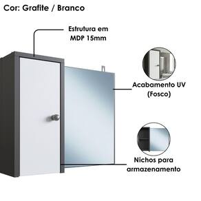 Armário Espelheira LVA04 elegante e funcional, ideal para deixar seu banheiro ainda mais completo! Produzido em MDP de 15 mm com acabamento UV fosco. Possui porta única com puxador pontual em Plástico, dobradiças metálicas e nichos interno (com capacidade de até 1 kg cada). Acompanha também espelho de 3 mm e montagem flex (lado direito ou esquerdo) conforme preferência durante a montagem. NÃO ACOMPANHA OBJETOS NEM DEMAIS DECORAÇÕES. Este produto será entregue em 1 volume.