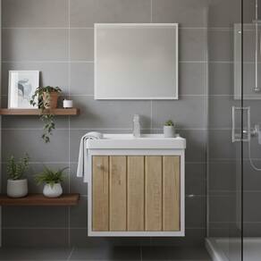 Conjunto gabinete + espelheira veneto Riverzza O gabinete suspenso para banheiro é desenvolvido com estrutura em mdf e a cuba em bmc, garantindo mais durabilidade e resistência ao produto. Medida do gabinete: l x a x c 40cm x 41cm x 31,5cm Peso gabinete: 8,4 kg Peso suportado: 10 kg Medida da cuba: l x a x c 40cm x 2,5cm x 31,5cm Medida da espelheira: l x a x c 38cm x 36cm x 1,2cm Furo da torneira: 2,7cm Furo do ralo/válvula: 3,2cm Medida da embalagem produto desmontado : l x a x c 38,3cm x 21,2cm x 46cm Peso da embalagem: 8,85 kg Itens inclusos: 1 gabinete de banheiro, 1 pia, 1 espelheira e 1 kit de montagem. Acompanha cuba: sim cor: branca Material da cuba: bmc Estilo: moderno Furação para cuba e torneira: sim Material da porta: mdf Material do puxador da porta: plástico Material principal: mdf Possui espelho: sim Possui gabinete: sim Possui gaveta: não Possui iluminação: não Possui pés: não Possui portas: 01 Possui prateleiras: não Possui rodízio: não Kit montagem: sim apenas para montagem, não acompanha parafusos para fixação Necessita montagem: sim Complexidade da montagem: baixa pode ser montado por uma pessoa sozinha Origem do produto: nacional do fornecedor: 03 meses Recomendações de uso, manutenção e limpeza: limpar com pano levemente umedecido Tipo de dobradiça da porta: metálica Tipo de porta: bater Tipo de puxador da porta: externo