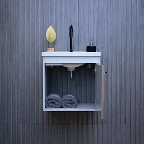 Conjunto gabinete + espelheira veneto Riverzza O gabinete suspenso para banheiro é desenvolvido com estrutura em mdf e a cuba em bmc, garantindo mais durabilidade e resistência ao produto. Medida do gabinete: l x a x c 40cm x 41cm x 31,5cm Peso gabinete: 8,4 kg Peso suportado: 10 kg Medida da cuba: l x a x c 40cm x 2,5cm x 31,5cm Medida da espelheira: l x a x c 38cm x 36cm x 1,2cm Furo da torneira: 2,7cm Furo do ralo/válvula: 3,2cm Medida da embalagem produto desmontado : l x a x c 38,3cm x 21,2cm x 46cm Peso da embalagem: 8,85 kg Itens inclusos: 1 gabinete de banheiro, 1 pia, 1 espelheira e 1 kit de montagem. Acompanha cuba: sim cor: branca Material da cuba: bmc Estilo: moderno Furação para cuba e torneira: sim Material da porta: mdf Material do puxador da porta: plástico Material principal: mdf Possui espelho: sim Possui gabinete: sim Possui gaveta: não Possui iluminação: não Possui pés: não Possui portas: 01 Possui prateleiras: não Possui rodízio: não Kit montagem: sim apenas para montagem, não acompanha parafusos para fixação Necessita montagem: sim Complexidade da montagem: baixa pode ser montado por uma pessoa sozinha Origem do produto: nacional do fornecedor: 03 meses Recomendações de uso, manutenção e limpeza: limpar com pano levemente umedecido Tipo de dobradiça da porta: metálica Tipo de porta: bater Tipo de puxador da porta: externo Marca: Não Informado