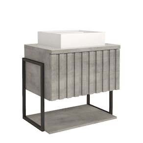 1 Porta basculante com abertura com pistão à gás Prateleira formato ripado Puxadores em ABS Estrutura MDF e metalon Lvatório em mármore sintético