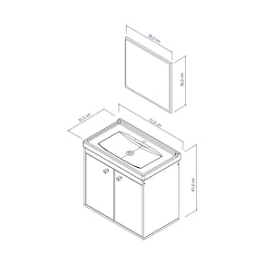 Medidas: Gabinete 51x47x31,5cm, Cuba 51x12x31,5cm, Espelheira 38x36x1,5cm.