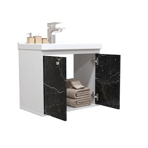 Gabinete suspenso em MDF e cuba em BMC branca, resistentes e duráveis. Estilo moderno, ideal para banheiros compactos.